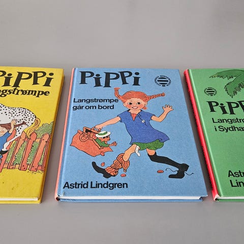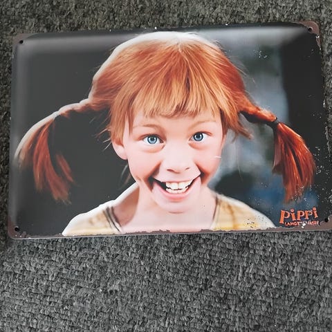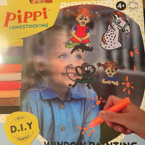 Pippi Langstrømpe børneservice i porcelæn med tekande, kopper, tallerkener, sukker- og flødekande. Servicen har motiver af Pippi Langstrømpe og er velegnet til børn.
