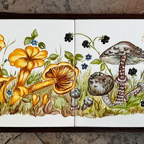 Gamle smukke antikke kakler . Indrammet. Måler 29,5x29,5.