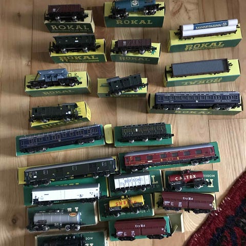 Flot, tungt lokomotiv og vogn fra tyske Rokal. Fra 1960’erne. Ligger i den originale æske. Toget er ikke afprøvet. Fast pris. Kan evt sendes for 55 kroner Telefon 71701243