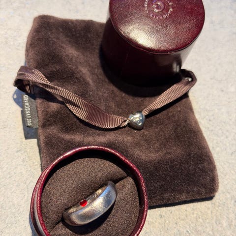 Denne ualmimdelige smukke Love ring nr. 5 og 0,06 ct. TW/VS nedstukket brillanter som hjerte. Str 55. Passer også en str 54 men grundet ringens form og fylde, skal den være et nummer større. Designet af Charlotte Lynggaard, er udført i 18 karat guld med ordet LOVE og et hjerte indgraveret på den ene side. Professionelle guldsmede hamrer de synlige overflader på ringen i hånden for at opnå den teksturerede finish.