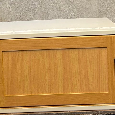 Døren sikres med to solide forkrommede låsbolter. En fast bolt på den hengslede siden sikrer også mot at uvedkommende kan bryte seg inn i skapet. Klargjort for fastbolting til gulv. Ekspansjonsbolt for betong medfølger.