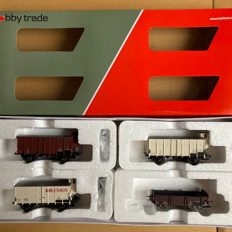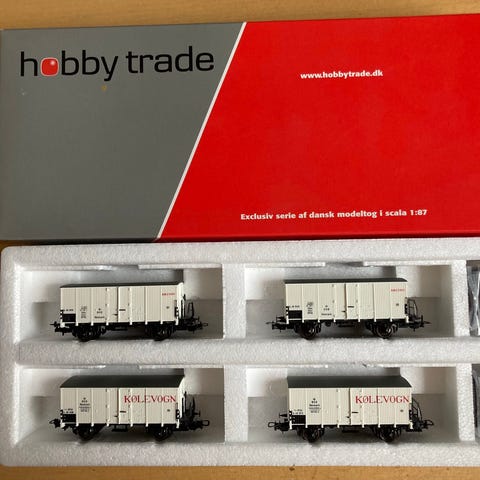 Hobby Trade 34007 - DSB ZB - lukkede hvide godsvogne - “Albani” - 3-vognssæt - ZB 99 687 - ZB 98 688 - ZB 99 689 - alle vogne med rangerskruebremse på lav platform - epoke III/IV - skala 1:87 - HO.