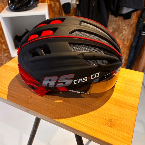Cykelhjelmen er købt til brug til triathlon men ikke brugt meget og aldrig været i uheld.