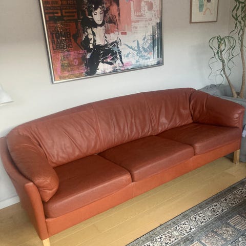 Byd på denne flotte velholdte lædersofa lavet i kirsebærtræ. En solid og kvalitetstro træsort!