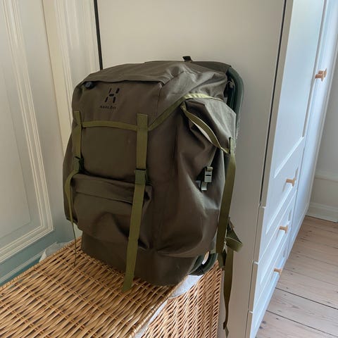 Rygsækken er brugt, men i pæn stand. Almindelige brugsspor og patina - ikke noget der påvirker funktionaliteten.