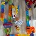 Vtech toot-toot Drivers racer bilbane. Den er komplet på nær racerbilen er gået i stykker og er der ikke, men fjernbetjeningen er der. Hvis man har sådan en og måske nogle af bilerne er den perfekt.