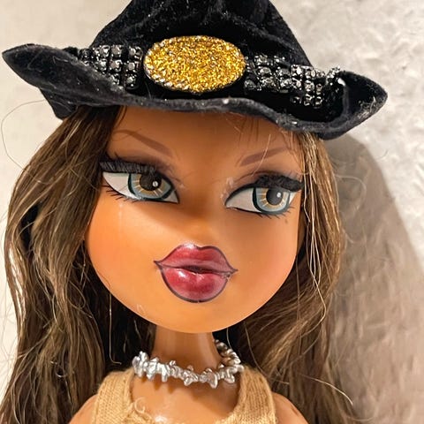 En eftertragtet vintage Bratz-dukke med masser af originalt vintertilbehør.