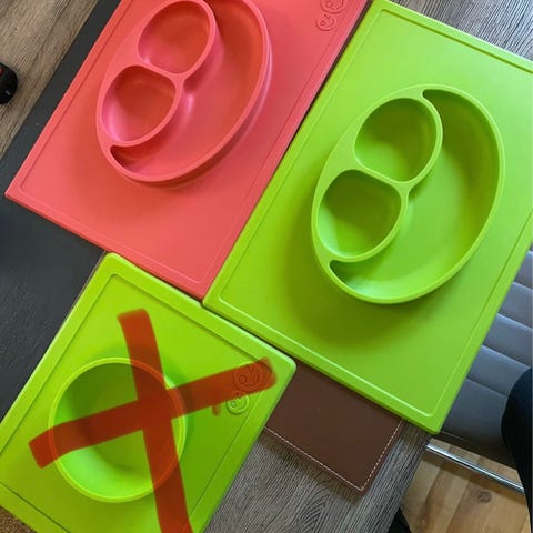 To stk Ezpz tallerkener i silicone som kan “suges” fast til bordet.