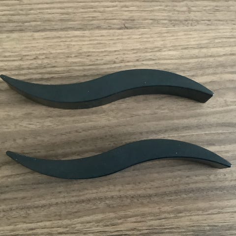 Royal Copenhagen bordskånere med bølget design. Bestikket er fremstillet i valnøddetræ og bærer Royal Copenhagen-mærket.