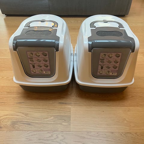 Sælger et Savic Nestor Jumbo kattetoilet i beige.