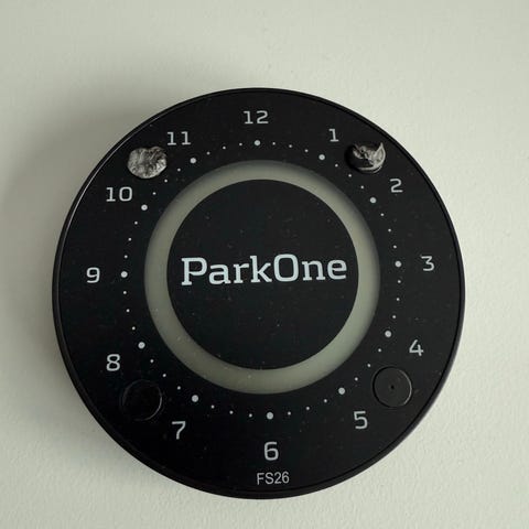 Park Lite elektronisk parkeringsskive med digitalt display til visning af parkeringstidspunkt. Designet til nem betjening og præcis tidsangivelse ved parkering.