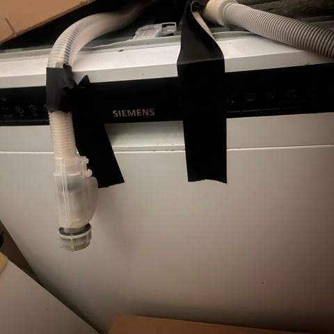 Opvaskemaskinen skal hentes i en port i stueetage.