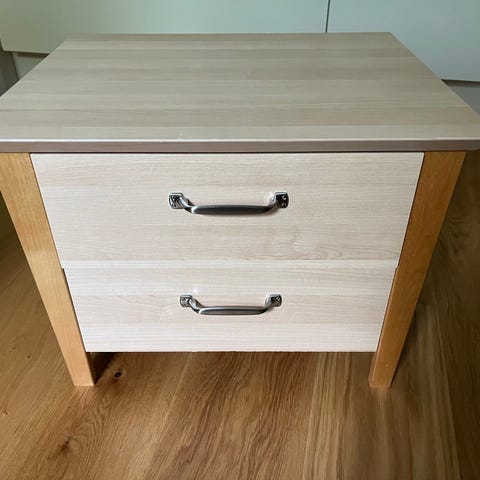 Sengebord i træ med skuffe. Sælges pga flytning