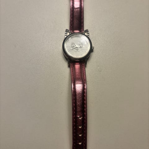 Lækkert pige ur i rustfri stål med hvid analog urskive og pink ramme og rem