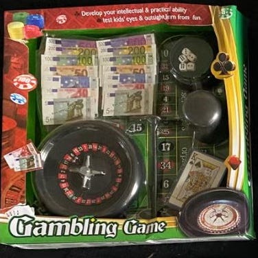 De Luxe Roulette Set indeholder et roulettehjul, et filt layout til bordet, 120 chips med talstemplet, to stålbolde, en rive og en brik (pawn). Sættet er designet til at blive brugt til roulette spil.