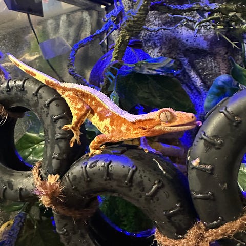 Den smukkeste kronegekko, han “Leonardo” sund og rask, mega aktiv sidder altid på glasset og følger med i hvad man laver ude på den anden side, han er så håndtam som en kronegekko kan blive. Han er meget rolig og hopper ikke så meget i håndtering, perfekt til børn eller vis man bare ønsker en super flot kronegekko med en blid personlighed. Check mine andre annoncer med en hun som er mindst ligeså flot, samt stort terrarie. Vis man ønsker at købe dem begge kan man få en del rabat. (Denne pris er uden terrarie)