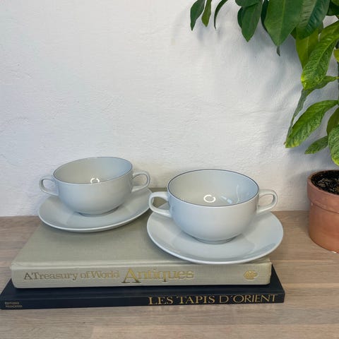 3 stk. Aluminia Knud bouillon kopper og 2 underkopper. Se mål på billeder. Uden skår og lign.