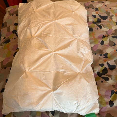 Vores datter ønskede sig denne pude i julegave, men nu alligevel ikke have den. Den har aldrig været brugt - kun åbnet og taget ud af emballagen. Helt ny - der medfølger to pudebetræk, hvor det ene har været vasket.