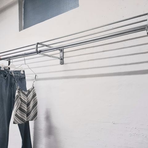 Bøjlestang til entre med hattehylde i top kvalitet og design. Rustfrit stål og skjulte samlinger og skruer. Meget fornemt. Der medfølger tre bøjler i samme stil. Nypris 3500,-. Skarp pris ved hurtig afhentning.