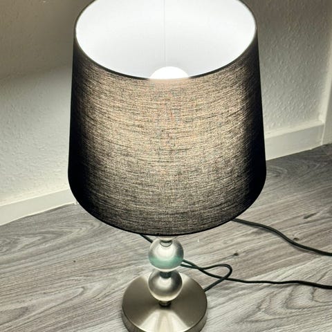 Sort skærm og lyspære med justerbar lys via app.