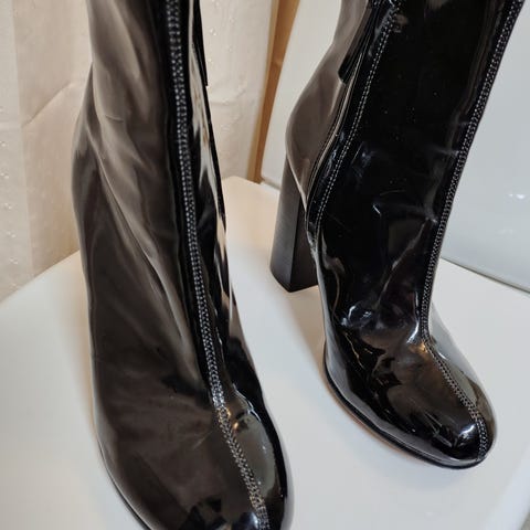 Støvletter str. 39, sort lak med snøre