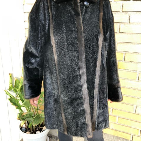 Grå Grønlands pelsjakke til kvinder i størrelse ML fremstillet i sælskin. Jakken har en varm og naturlig pelsstruktur. Er hel og fin.