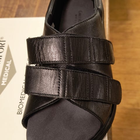 Flotte nærmest ubrugte sandaler i mærket New Feet. Kun prøvet på ganske få gange. Nypris 1200kr. Købt i Ortopæd butik ( uden indlæg eller lign.)