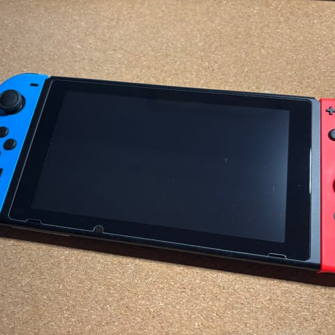 Nintendo switch i fin tilstand, 4 joy cons, en rød, en blå og to grå, Cover til at putte switchen i til ture, screen protector på switch kan godt tages af.