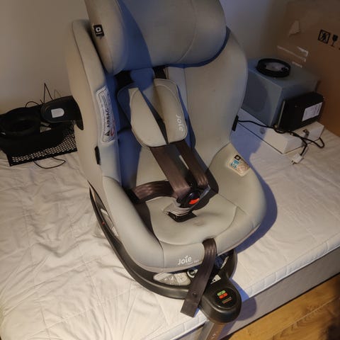 Joie Autostol fra 0 - 4 år. 4 år gammel. Står som ny da den ikke er anvendt så ofte af vores datter.