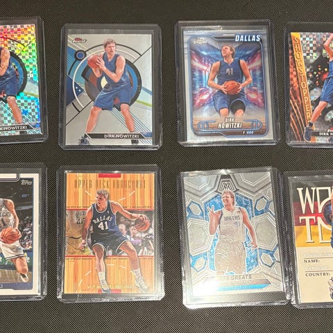 Samling af basketballkort med forskellige spillere fra 90’erne og de tidlige 00ere.