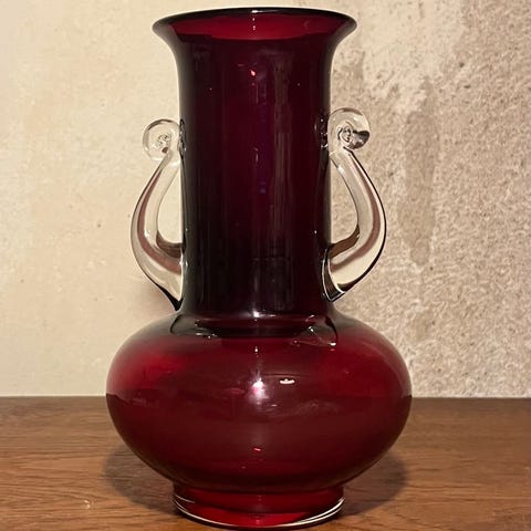 Oprindelse og stil: Vasen erjapansk mid-century art glass, udført i en stil, der kan minde om venetiansk glas (Murano).
