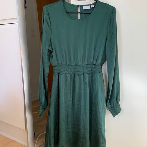 Vila SIS Shirt Dresskjole i størrelse XXL til kvinder. Kjolen er grøn og lavet af viskosemateriale. Modellen har kortærmet skjortestil med bindebånd i taljen.