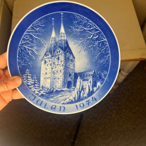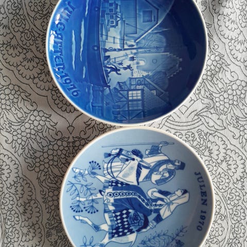 48-stk,Bing & Grøndahl Juleplatte 1975 porcelæn blå hvid