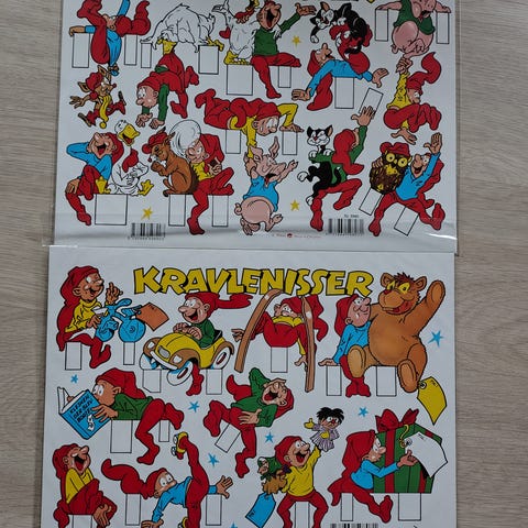 Ca. et halvt ark Bramming kravlenisser der ikke er klippet ud, men arket har været foldet.