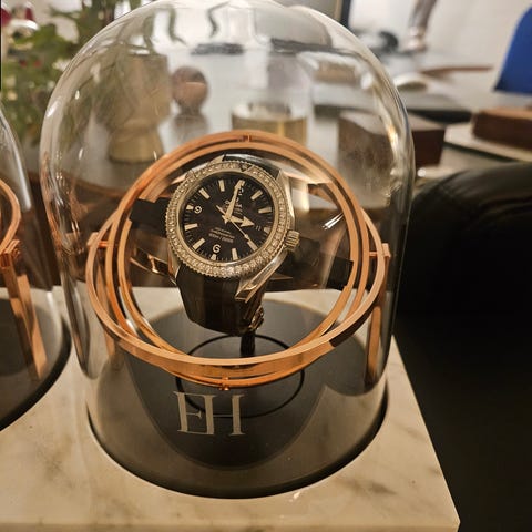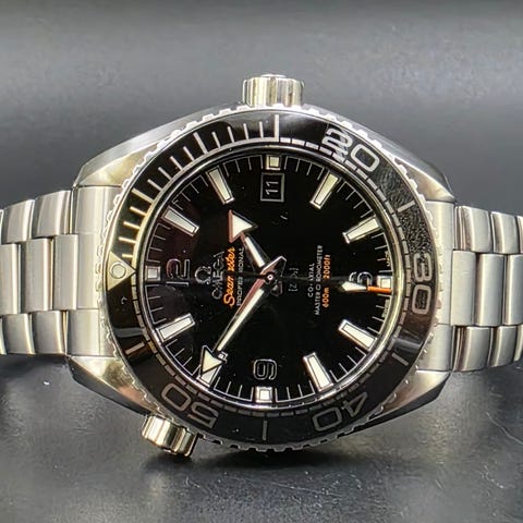 Vi ser her en Omega Seamaster Planet Ocean "Sedna" Chronograph med ref. 215.23.46.51.03.001, der tryller frem en kassediameter på 45.5mm. Du har brug for en stor håndled og sandelig en stor ego for at passe den, hvis ikke, så vil denne ego-ist bandlyse dig fra at nyde den.