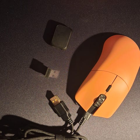 En trådløs gaming mus fra glorious forge. den kan bruges både med USB C kabel eller trådløs med dongle. Den har varet brugt i cirka 1 år fejler intet og har kun normale brugs tegn. Ud over den framragne pasfrom hastihed og kvalitets sensor så er den også meget let.