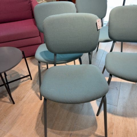 Stolen har et moderne design med et hulmønstret sæde, der giver en let og luftigt udseende. Den er lavet af plastik med metalben.,Afhentes i:,Røde Kors Kolding (621),Bemærk at mail, chat og beskeder ikke besvares, og varen skal købes på knappen "Gå til varen"