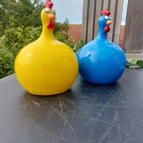 Polyresin-skulptur med titel 'funny gold balloon chicken', oprindelse Europa, u-signeret, i fremragende stand, højden 40 cm, dybden 33 cm og bredden 30 cm. Klik på den blå "gå til varen" knap, for at købe eller byde på denne vare. Den samlede pris vil blive vist inden du afgiver dit bud.