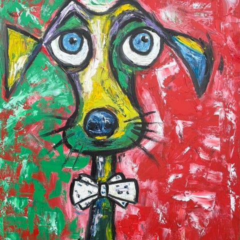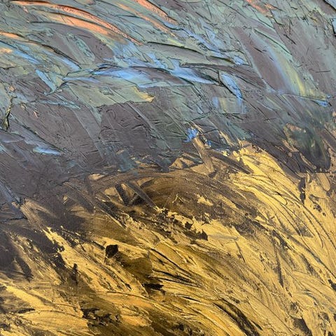 Dette er et oliemaleri på 60x60 cm på strakt lærred inspireret af kunstneren David Hockney, en af mine yndlingskunstnere. Jeg prøver at undgå 'local color' og udforske, hvilke farver det nøgne øje virkelig ser, i stedet for at stole på, hvilken farve du tror, noget i naturen ville have.