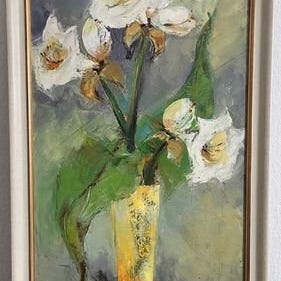 Toos van Holsteins oliemaleri Najade, originalt moderne værk med en naken fremstilling, fra 2000, 94 × 44 cm inklusive ramme. Klik på den blå "gå til varen" knap, for at købe eller byde på denne vare. Den samlede pris vil blive vist inden du afgiver dit bud.