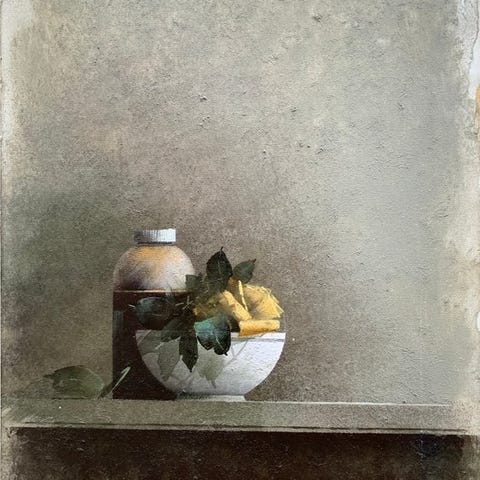 Andrea Agostinis karakteristiske stil og hans hav, et lille marint udsyn ledsaget af en smuk lille poetisk sætning.