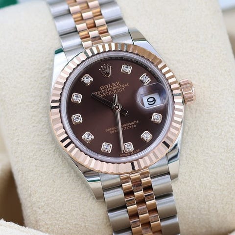 Det er et af de fineste kvinders ure, siden 1957. De små 26 mm dimensioner gør denne model til et manufakturjuveler Rolex Jubilee armbånd i overensstemmelse med 18 karat gult guld og stål. Modellen er en kompliment af sofistikeret elegance, signeret