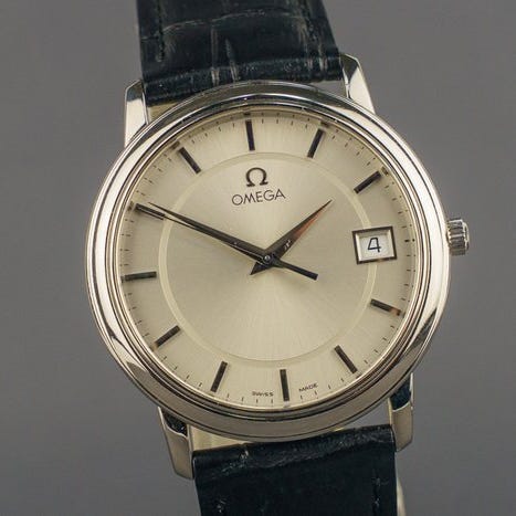 - Bevægelse: Omega Caliber 1332 Quartz – fuldt funktionelt og pålideligt.