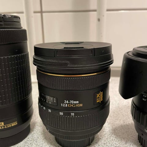 24-70mm f/2.8 DG linse til Nikon F, testet og fungerer, i fremragende fysisk stand, komplet med emballage, etui og lenscape. Klik på den blå "gå til varen" knap, for at købe eller byde på denne vare. Den samlede pris vil blive vist inden du afgiver dit bud.