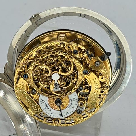 Ur i massivt sølvgehæuse - mindst 0,800 (stemplede i bagklappen).
