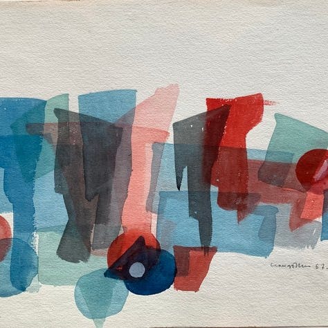 Ven Emil (Fiume 1902 - Budapest, 1984), komposition, olie på masonite cm. 30,2x60,2x0,5, underskrevet nederst til højre; dateret på bagsiden (1964).