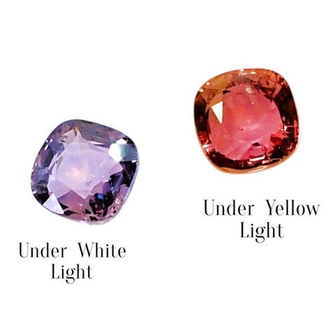 GRS Certificeret naturlig safir. Den har farveskift-effekter, som afhænger af lyset. Indklusioner er ikke synlige som på billedet. Den har en dyb farvetone.