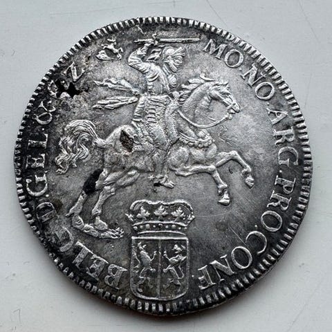 Utrecht, 1617, en sølvpengesølv Leeuwendaalder præget under møntmester Hendrik Hendriksz. van Domselaar, med byvåbenet Utrecht som mønttegn og Hollands løve på franksiden, omgivet af legenden Confidens Domino Non Movetur 1617; tilstand ikke certificeret. Klik på den blå "gå til varen" knap, for at købe eller byde på denne vare. Den samlede pris vil blive vist inden du afgiver dit bud.