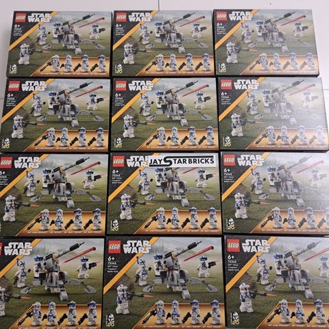 Sæt LEGO Star Wars bestående af 6 officielle artikler, ideelt for samlere eller fans af sagaen.