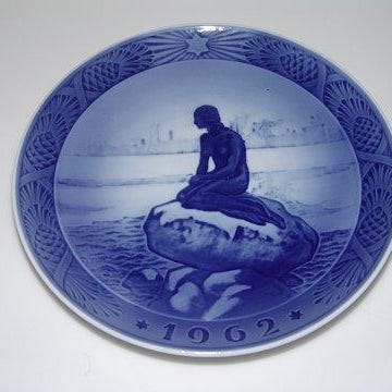 3 vintage porcelæns tallerkener fra Royal Copenhagen (1967, 1975, 1976) fra julekollektionerne med blå og hvide dekorationer. Fremragende stand, de er ikke blevet brugt, men har været udstillet som samlerobjekter.